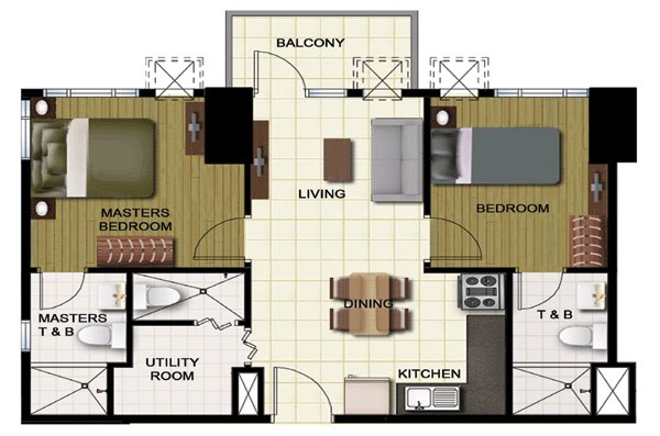 2 Bedroom Unit W/ Balcony - (57.15 - 71.10 sqm.)